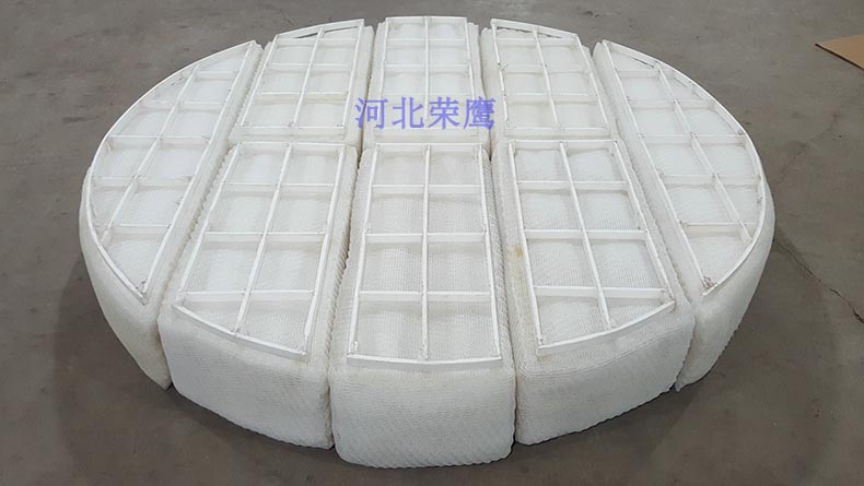 DP型(高效型)絲網(wǎng)除沫器相對于其它兩種型式,是分離效率較高的一種。DP型(高效型)絲網(wǎng)除沫器的容積重量是186kg/m3,我們知道,容積重量對絲網(wǎng)除沫器除沫效率的影響是非常顯著的:在同一液滴直徑下,除沫效率會隨容積重量的增加而增大,這是由于容積重量的增大,降低了絲網(wǎng)除沫器的空隙率,增大了絲網(wǎng)的比表面積,必然導(dǎo)致氣流中的液滴更容易被捕集。DP型(高效型)絲網(wǎng)除沫器所用的絲網(wǎng)直接影響到絲網(wǎng)除沫器的使用(除沫效率、壓降等),因此所采用的絲網(wǎng)必須經(jīng)過測定和確認,達到行業(yè)標準所規(guī)定的工藝參數(shù),才能在除沫器中使用。